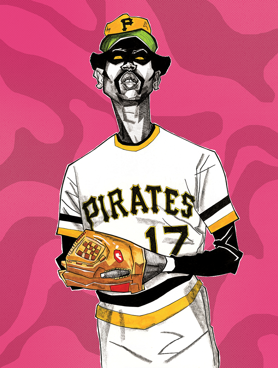 Illustration of legendary Pittsburgh Pirate pitcher and character Dock Ellis.