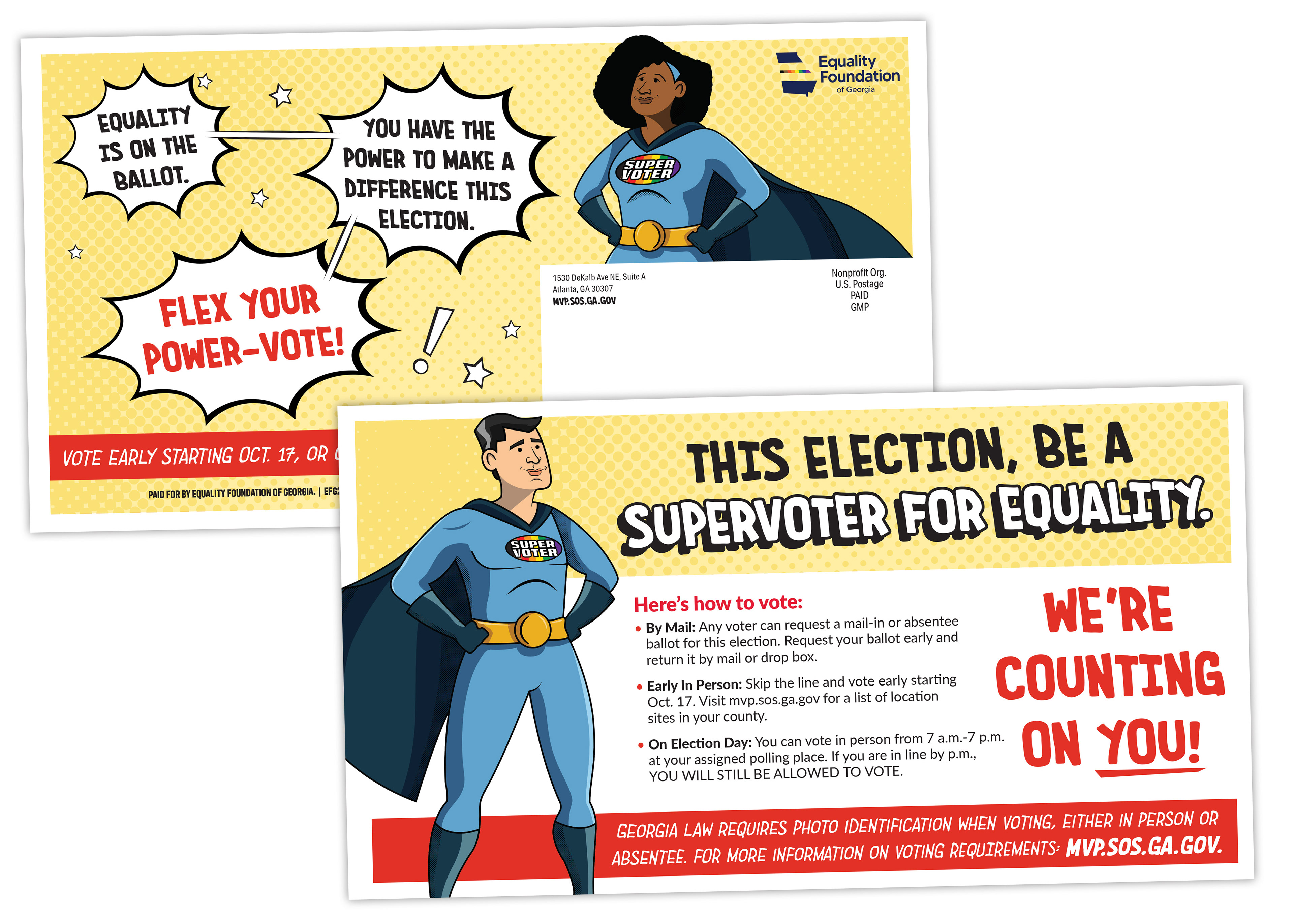 This campaign was created for Georgia Equality and the Equality Foundation of Georgia. The goal was to utilize superhero imagery to drive voter turnout among the LGBTQ+ population of Georgia.
